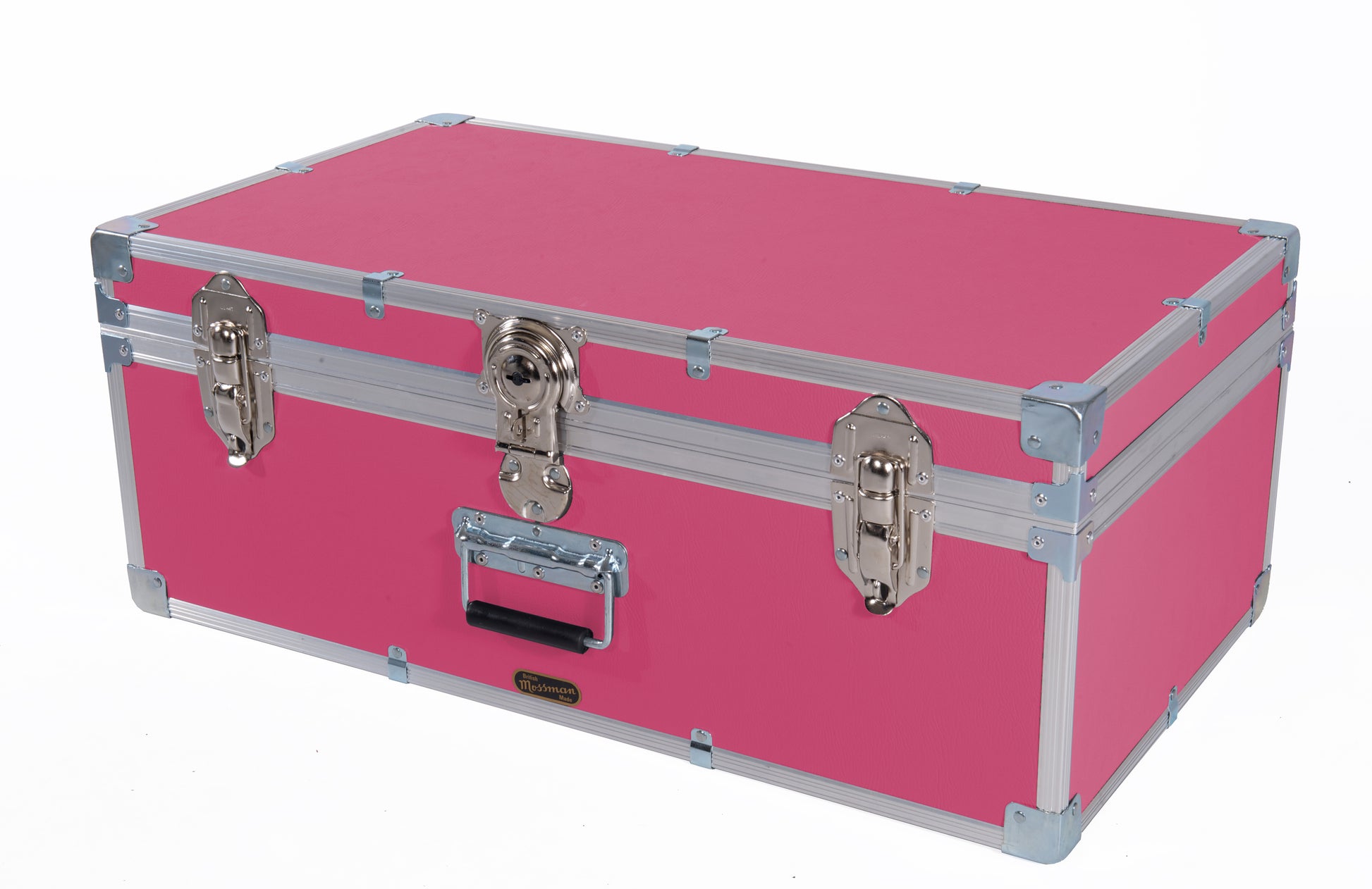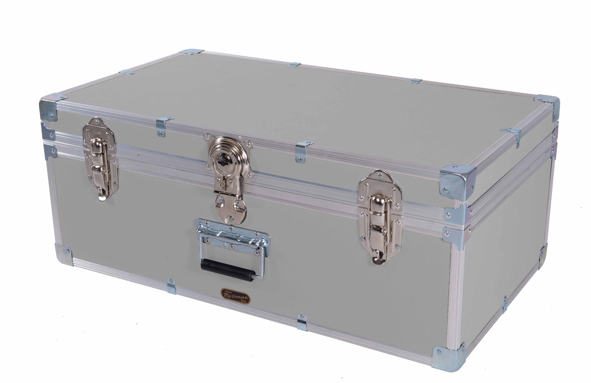 With a central cabin lock, hinged stay lid, rubber grip sprung carry handle to the front, two padlockable catches and a paper lined interior. The timber frame of our industrial tuck boxes and trunks are pinned and glued together before the aluminium edging is added to make them the strongest they can be. Mossman Trunks is the number one choice in boarding school Tuck Boxes, luggage chests and storage trunk solutions.