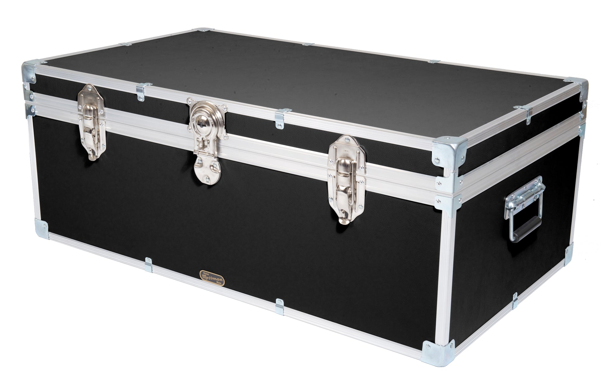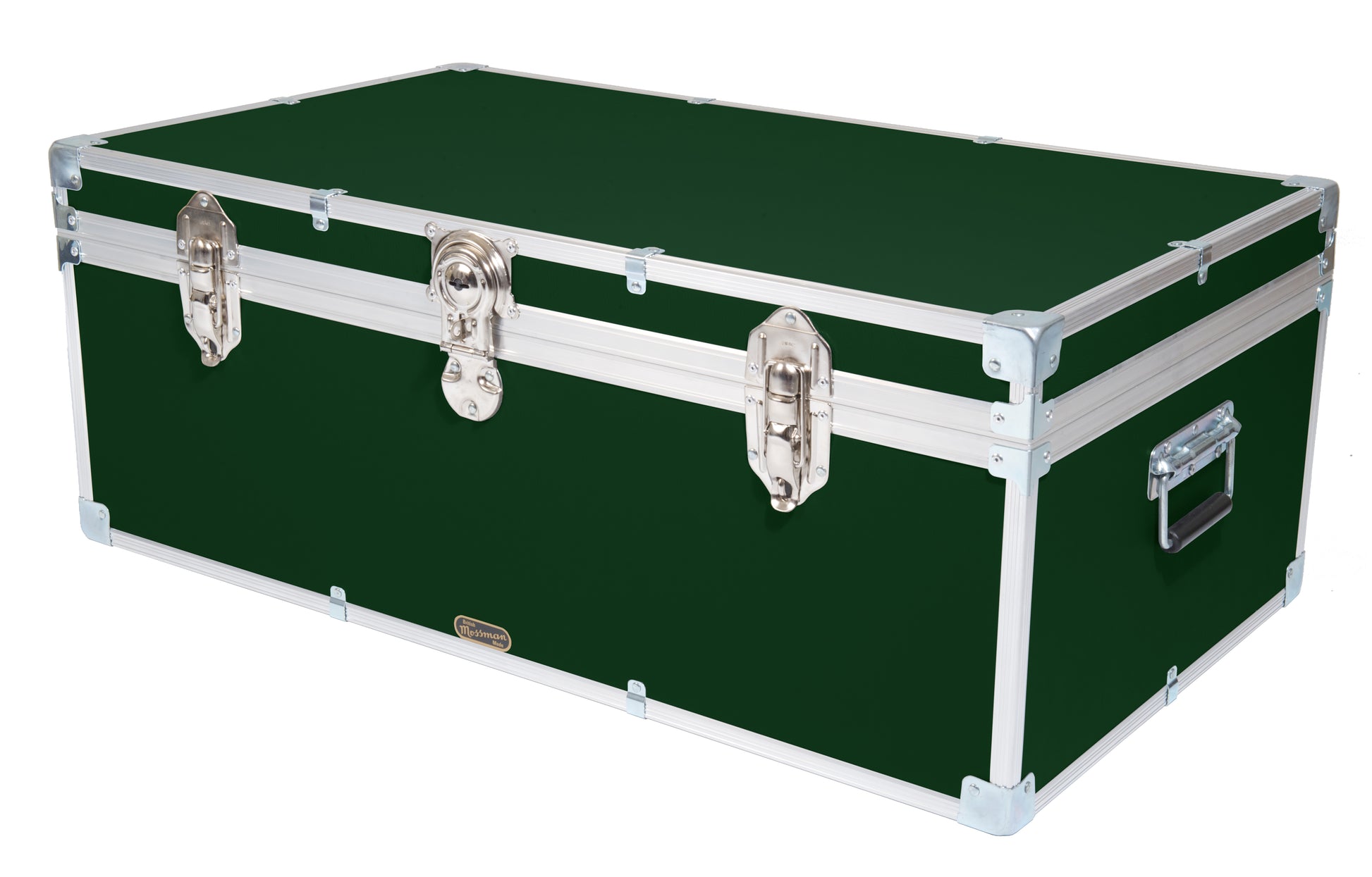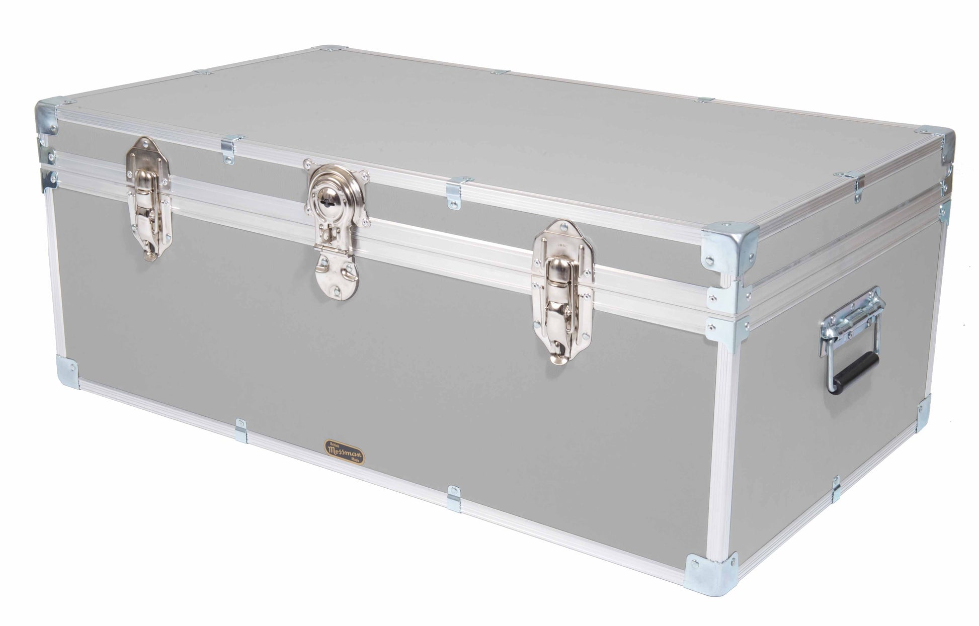 With a central cabin lock, hinged stay lid, carry handles each end, two padlockable catches and a paper lined interior. The timber frame of our industrial tuck boxes and trunks are pinned and glued together before the aluminium edging is added to make them the strongest they can be. Mossman Trunks is the number one choice in boarding school Tuck Boxes, luggage chests and storage trunk solutions.