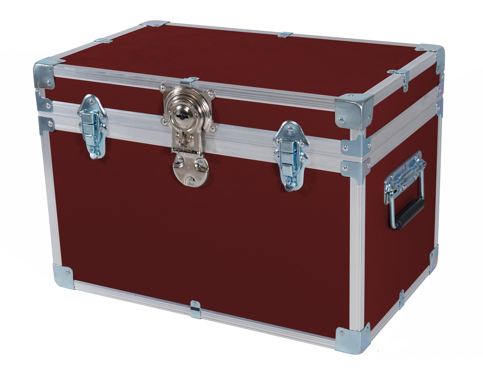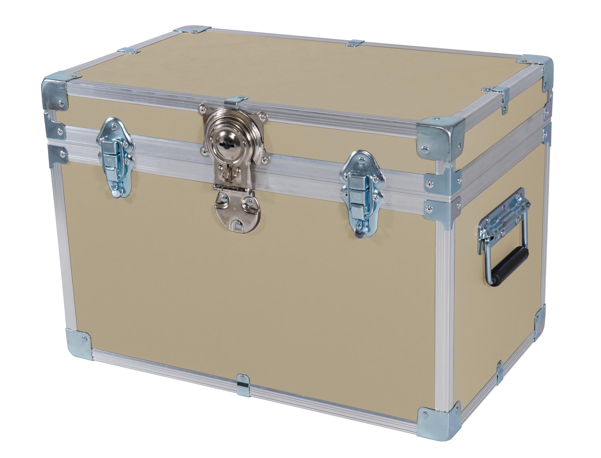 With a central cabin lock, hinged stay lid, rubber grip sprung carry handles each end, two padlockable catches and a paper lined interior. The timber frame of our industrial tuck boxes and trunks are pinned and glued together before the aluminium edging is added to make them the strongest they can be. Mossman Trunks is the number one choice in boarding school Tuck Boxes, luggage chests and storage trunk solutions.
