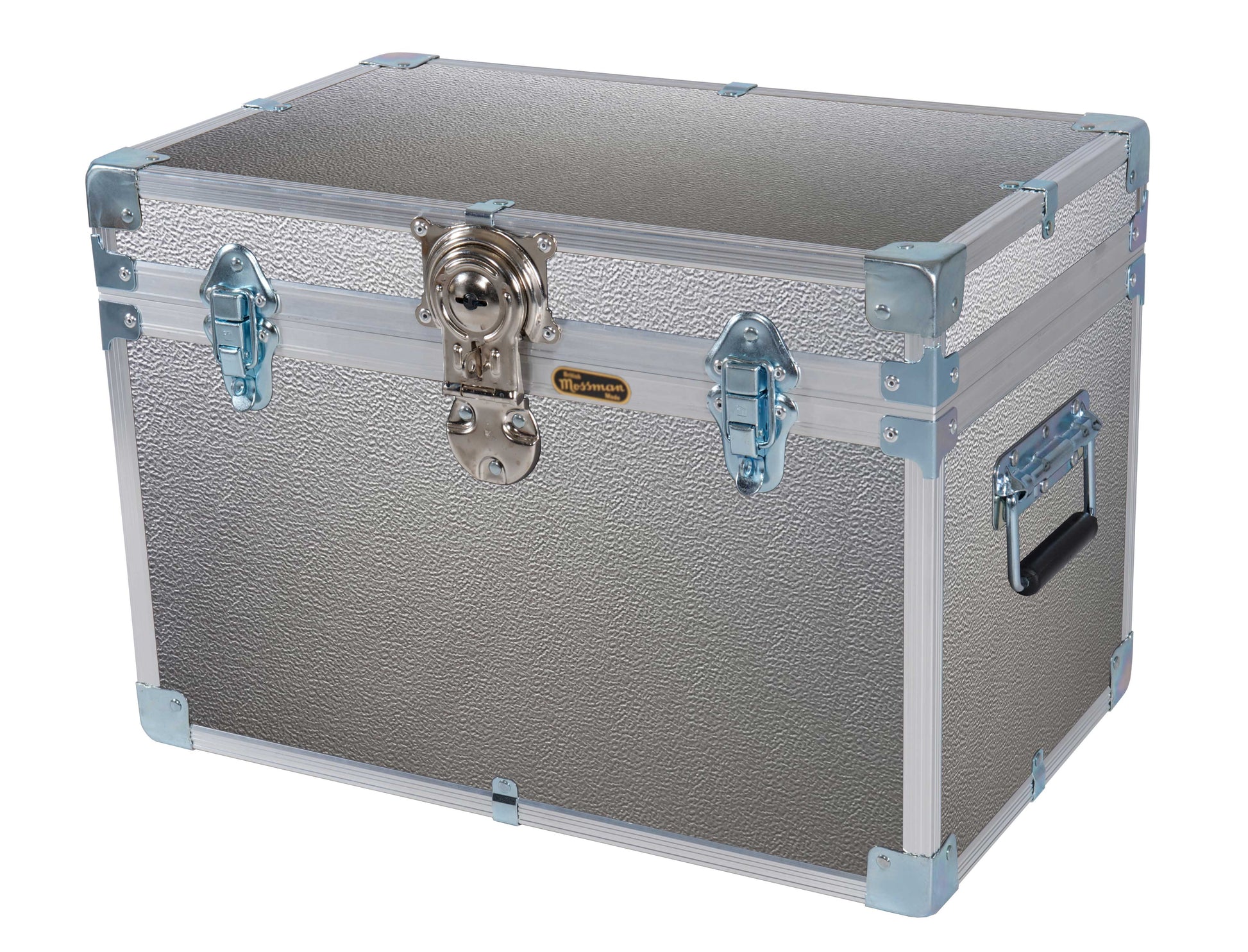 With a central cabin lock, hinged stay lid, rubber grip sprung carry handles each end, two padlockable catches and a paper lined interior. The timber frame of our industrial tuck boxes and trunks are pinned and glued together before the aluminium edging is added to make them the strongest they can be. Mossman Trunks is the number one choice in boarding school Tuck Boxes, luggage chests and storage trunk solutions.
