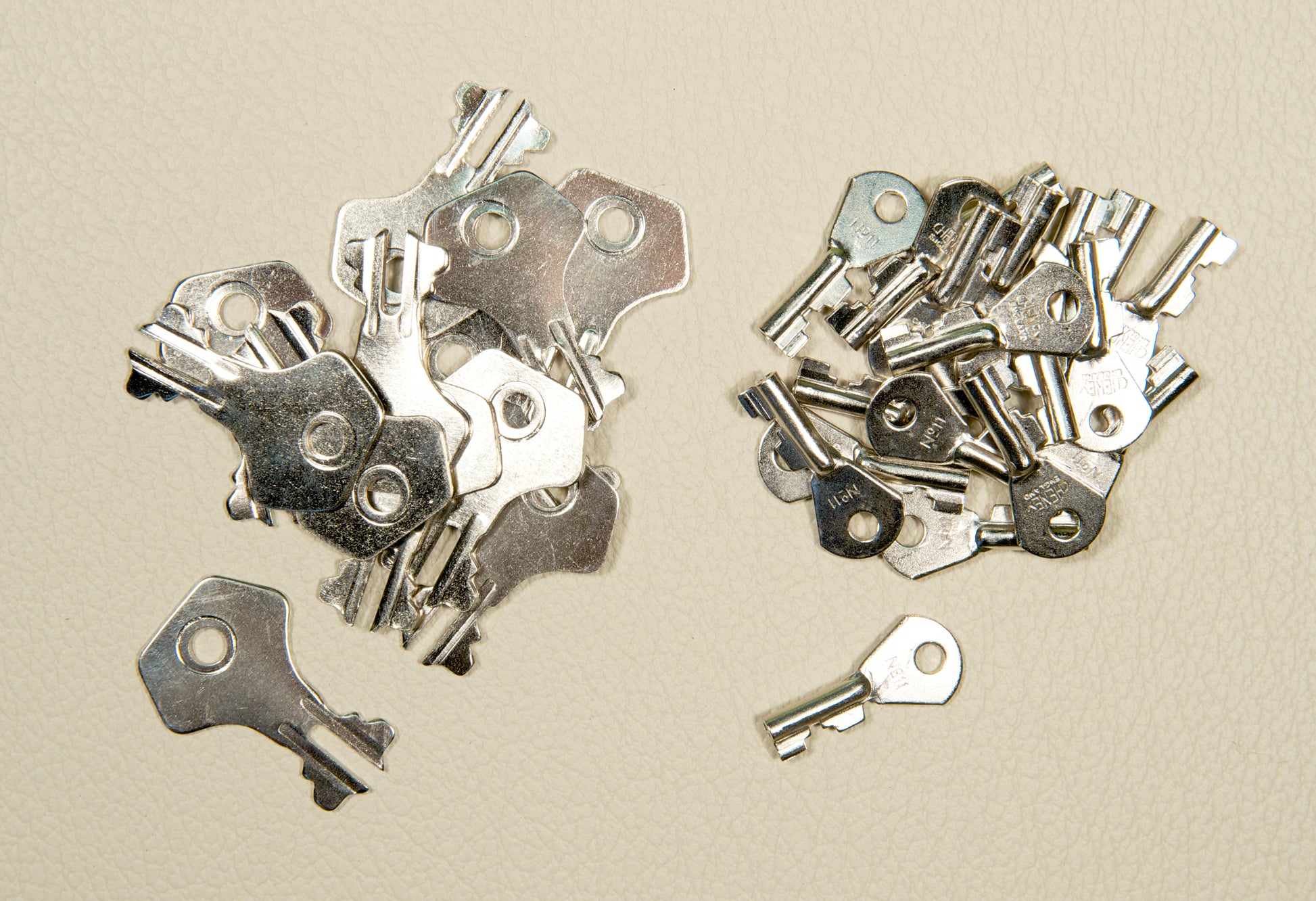 Purchase a set of 2 spare keys for use with Flip Lock Tuck Boxes, Stool Boxes, Briefcases and Attache Trunks. For use with flip locks only.