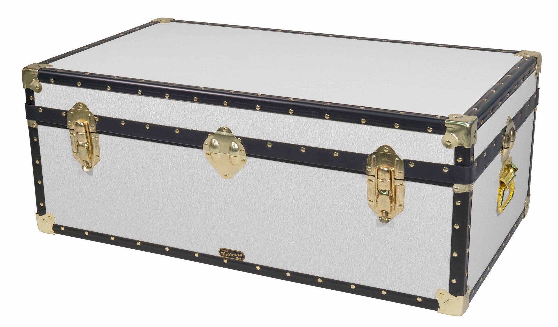 With a removable lid, carry handles each end, four padlockable catches and a paper lined interior. Mossman Trunks is the number one choice in boarding school Tuck Boxes, luggage chests and storage trunk solutions.