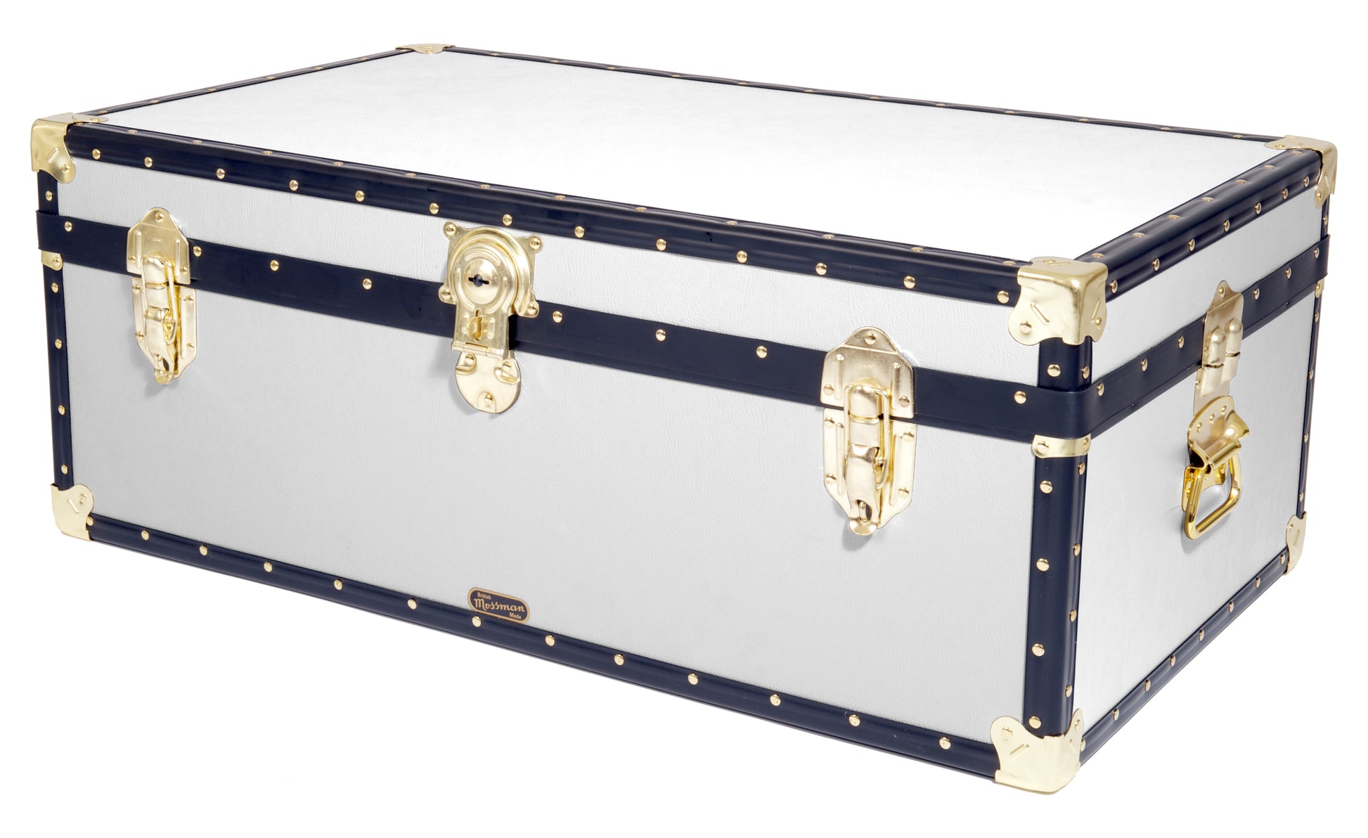 With a central cabin lock, hinged stay lid, carry handles each end, two padlockable catches and a paper lined interior. Mossman Trunks is the number one choice in boarding school Tuck Boxes, luggage chests and storage trunk solutions.