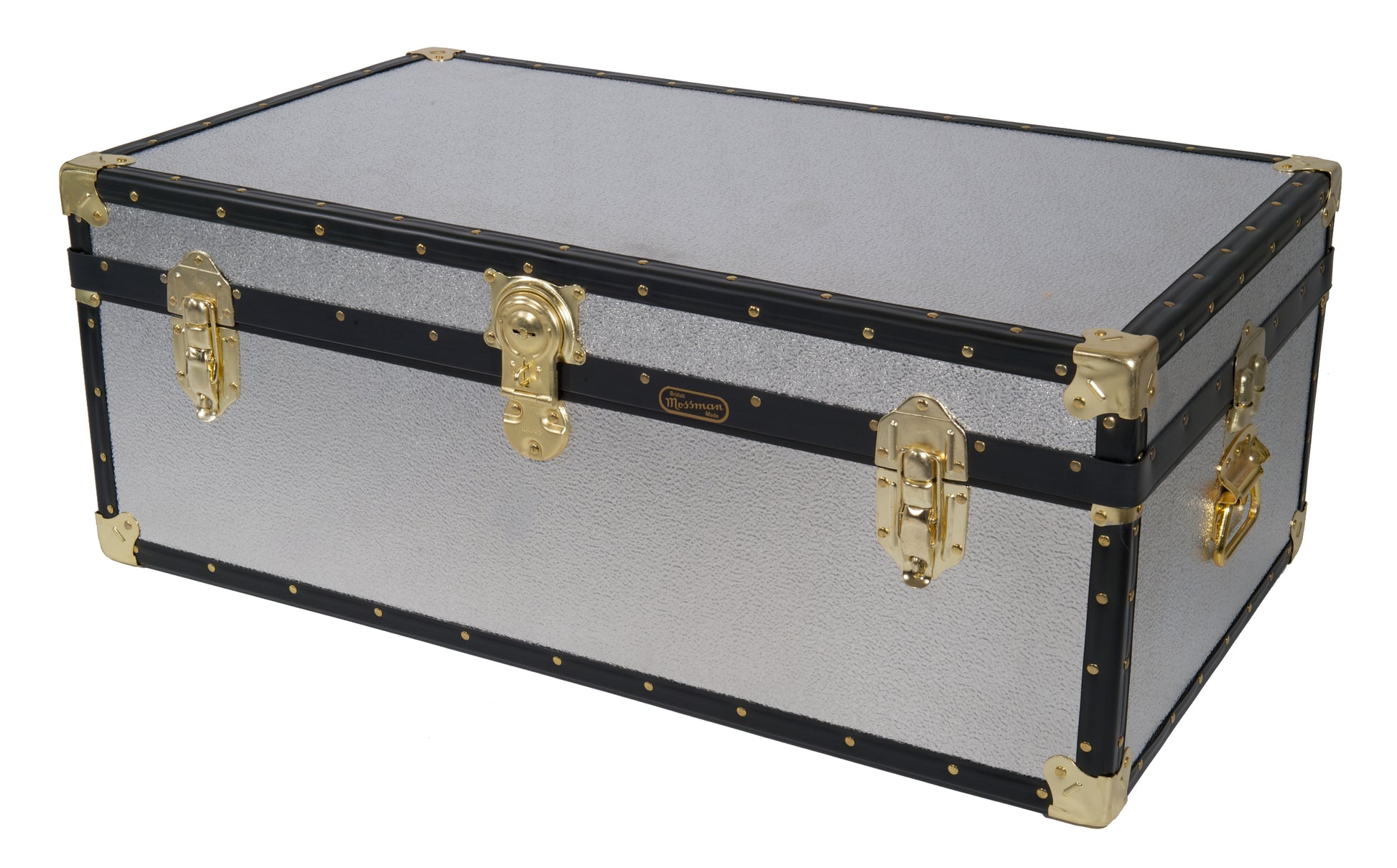 A shiny silver alloy alternative to our leathergrain range of tuck boxes and trunks. Each Steamer Trunk is constructed by hand from the highest quality 5.5mm plywood, which is bonded to a stucco-effect aluminium covering for that industrial look. The Steamer Trunk is a popular choice for boarding school students, but also looks great around the home too.