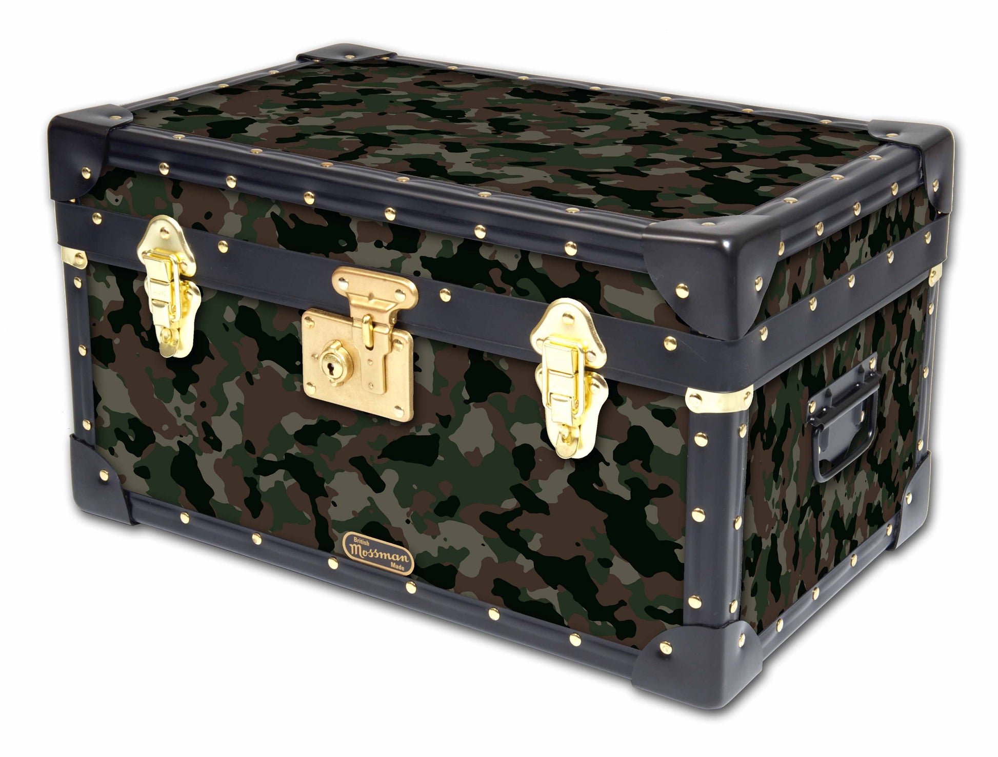A Camouflage traditional boarding school Tuck Box with Flip Lock. Available in one of 5x colours. Each Tuck Box is constructed by hand from the highest quality 5.5mm plywood, which is bonded to a Camo printed vinyl.