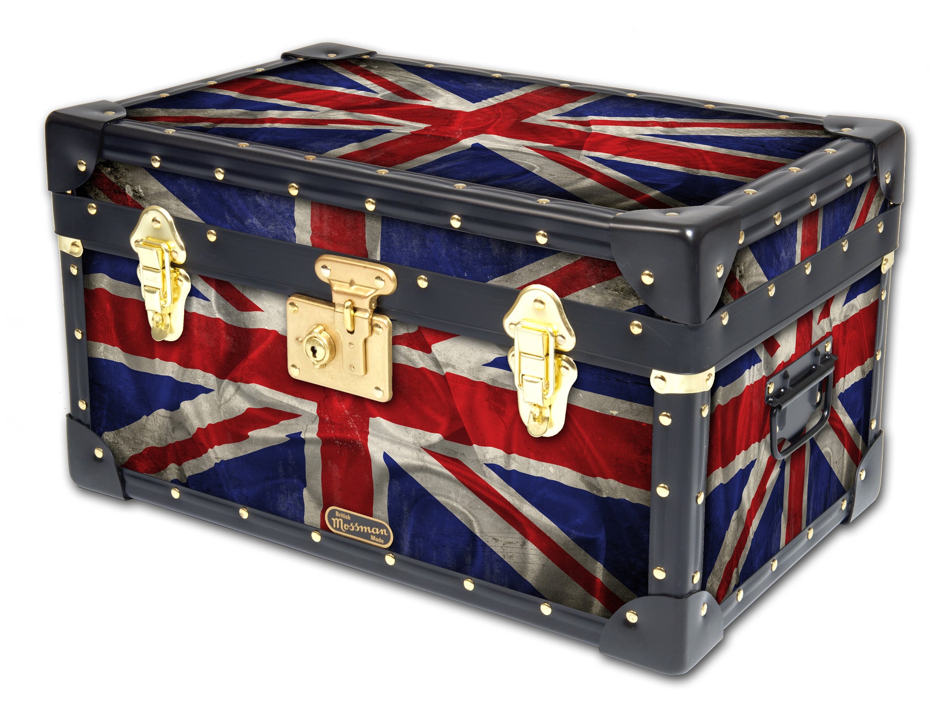 A patriotic Union Jack traditional boarding school Tuck Box with Flip Lock. Each Tuck Box is constructed by hand from the highest quality 5.5mm plywood, which is bonded to a patriotic Union Jack printed vinyl.