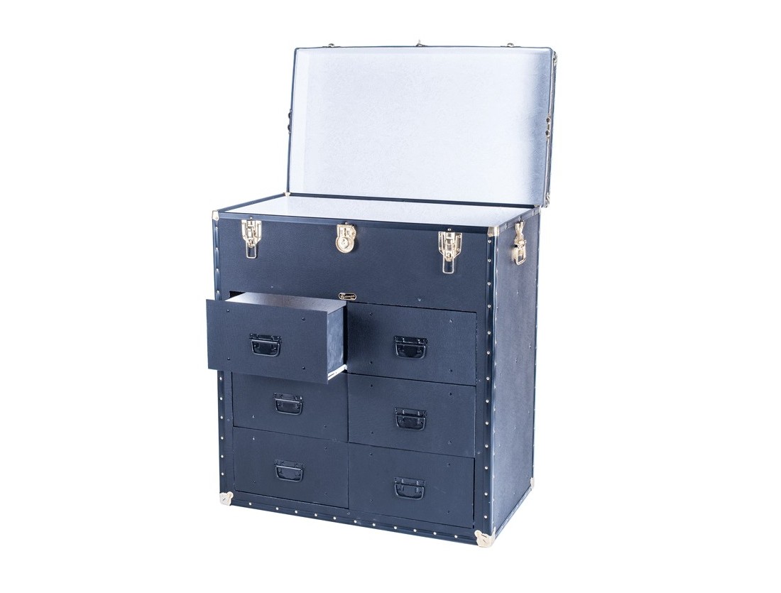 6 Drawer Traditional Style Tall Boy Trunk. The trunk comes complete with 6 drawers to the front and a trunk with lid to the top. A great piece of alternative bedroom furniture or a centre piece for your office or study.