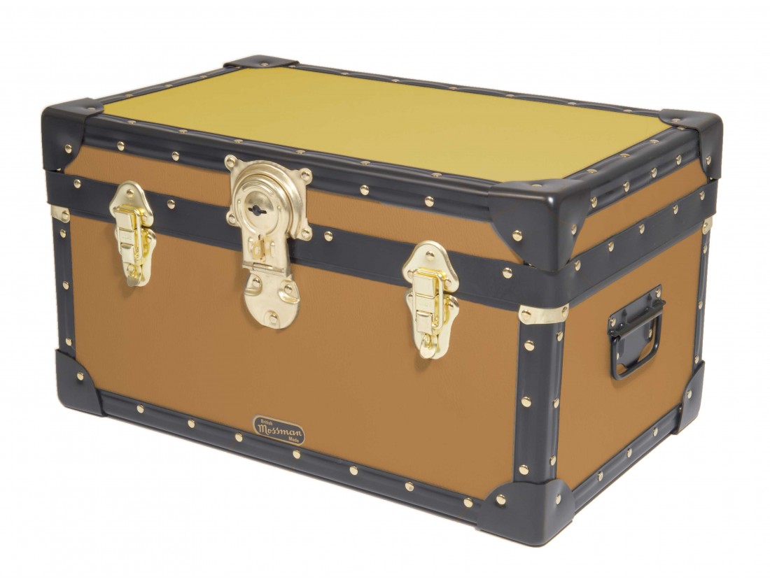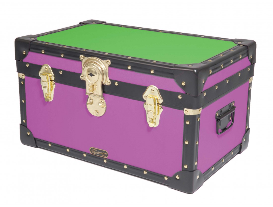 Constructed from the highest quality 5.5mm plywood, which is bonded to a choice of coloured durable leathergrain effect PVC vinyls.  With a hinged stay lid, carry handles each end, two padlockable catches and a paper lined interior.  Approximate internal dimensions 500mm x 300mm x 260mm. The number one choice in boarding school Tuck Boxes, luggage chests and storage trunk solutions.